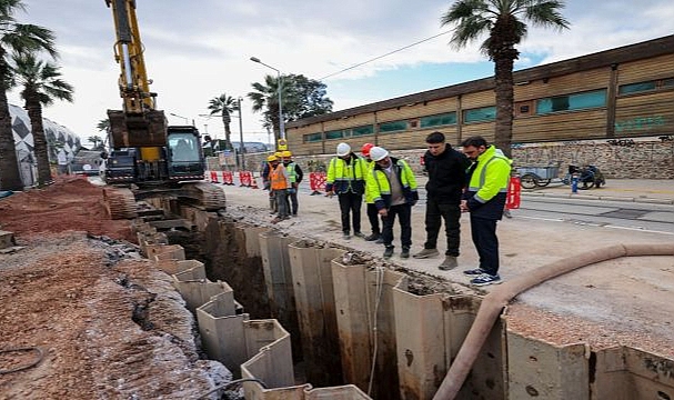 İzmir Büyükşehir Belediyesi İZSU Genel Müdürlüğü, Dünya Bankası finansmanıyla yürütülen Türkiye Deprem, Sel ve Yangın Acil İmar Projesi (TEFWER) kapsamında Alsancak Liman bölgesinde başlattığı altyapı çalışmalarını Şehitler Caddesi’nde sürdürüyor. Yağmur suyu ve atık su hatlarının ayrıştırılmasıyla taşkın ve koku sorunlarına kalıcı çözüm hedefleniyor.