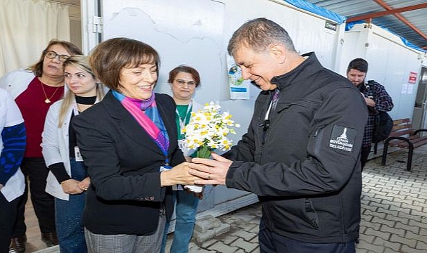 Dr. Cemil Tugay, tüm ihtiyaçları İzmir Büyükşehir Belediyesi tarafından karşılanan Samandağ 1 No'lu Aile Sağlığı Merkezi'ni de ziyaret etti. Sağlık emekçileri ile bir araya gelen Başkan Tugay, “Bundan sonra da bir şeye ihtiyacınız olursa, desteğe hazırız. Nisan ayında Hatay'da, kentin bütün ilçeleri ile yaşadığı sıkıntıları, mevcut durumu masaya yatıralım, konuşalım istiyoruz. Daha sonra görev dağılımı yapalım. Neticede doğru kararlarla bu çalışmaların yapılması daha sağlıklı sonuçlar doğurur. Bir ihtiyacınız olursa bilin ki biz elimizden geleni yapmaya hazırız” dedi. Sağlıkçılar da Başkan Tugay'a teşekkür etti. Barış ve kardeşlik vurgusu