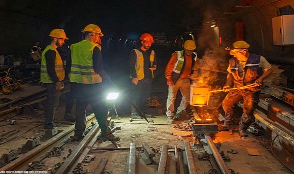 Bornova'da metro hattında raylar yenileniyor