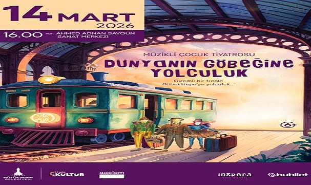 İzmir Büyükşehir Belediyesi’nin iştiraki İzmir Kültür AŞ tarafından kültür sanat etkinlikleri kapsamında sahnelenecek “Dünyanın Göbeğine Yolculuk” adlı müzikli çocuk oyunu, minik izleyicileri insanlık tarihinin en eski yerleşimlerinden biri olan Göbeklitepe’nin gizemli dünyasına taşıyacak. Oyun, 14 Mart 2026 Cumartesi saat 16.00’da Ahmed Adnan Saygun Sanat Merkezi Küçük Salon’da sahnelenecek.Inspera Çocuk tiyatrosu tarafından hazırlanan ve büyük ilgi gören yapım; renkli sahne tasarımı, özgün müzikleri ve tempolu anlatımıyla dikkat çekiyor. Gizemli bir tren yolculuğuyla başlayan hikâye, çocukları merak, keşif ve dostluk temaları etrafında şekillenen bir maceraya sürüklüyor. Oyun, çocukların kültürel mirasa dair farkındalık kazanmasını amaçlıyor.6 yaş ve üzeri çocuklara yönelik hazırlanan yapım, ailelerin de birlikte izleyebileceği şekilde kurgulandı. Eğlendirirken düşündüren içeriğiyle öne çıkan oyun, çocukları zamanın derinliklerinde unutulmaz bir keşfe çıkaracak.Etkinliğin biletleri çevrim içi bilet satış platformu Bubilet üzerinden temin edilebilecek.
