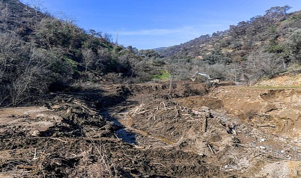 İzmir Büyükşehir Belediyesi, Ödemiş’te Çamyayla-Horzum yolunda orman yangınlarının ardından kesilen tomrukların yağışlar nedeniyle menfezi tıkaması sonucu çöken yolda onarım çalışmalarına başladı. Yoğun yağışta çökme riskini önceden tespit ederek can ve mal kaybını önleyen ekipler, alternatif güzergâh oluşturarak ulaşımın kesintiye uğramasını da engelledi. Menfez temizliği ve dolgu çalışmalarının ardından yol yenilenecek.