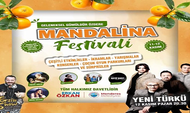 Menderes Belediyesi tarafından düzenlenecek Geleneksel Gümüldür-Özdere Mandalina Festivali 11-12 Kasım tarihlerinde gerçekleşecek. Yeni Türkü Grubu da festivalde sahne alacak