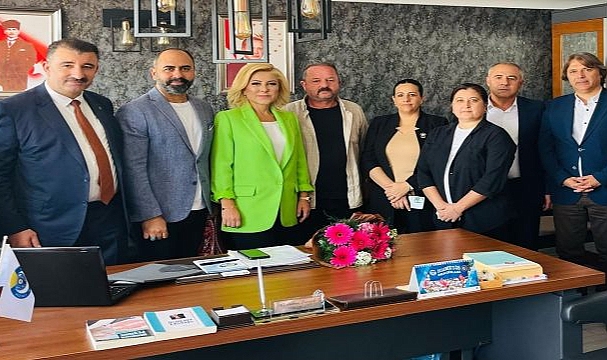 HAK-İŞ İl Başkanı ve HİZMET-İŞ Şube Başkanı Gültekin Şimşek ziyaret anısına Ak Parti Milletvekili Şebnem Bursalı'ya hediye takdim etti.