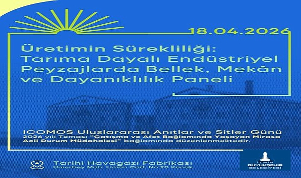 İzmir Büyükşehir Belediyesi yürütücülüğünde 17-18 Nisan tarihleri arasında Tarihi Havagazı Fabrikası yerleşkesinde “Üretimin Sürekliliği: Tarıma Dayalı Endüstriyel Peyzajlarda Bellek, Mekân ve Dayanıklılık Çalıştayı ve Paneli” düzenlenecek. “Uluslararası Anıtlar ve Sitler Günü” kapsamında düzenlenecek etkinlik, Uluslararası Anıtlar ve Sitler Konseyi’nin (ICOMOS) 2026 yılı “Çatışma ve Afet Bağlamında Yaşayan Mirasa Acil Durum Müdahalesi” teması çerçevesinde gerçekleştirilecek.